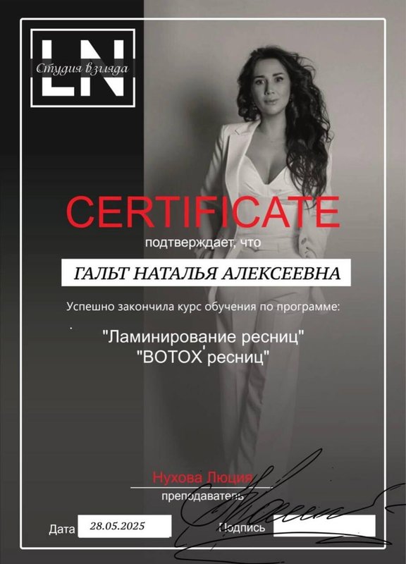 В косметологическом кабинете Натальи Гальт вам также предложат сделать наращивание ресниц и почти на месяц забыть о туши. Наши мастера используют только материалы проверенного качества, вид которых вы можете выбрать сами согласно вашим пожеланиям. В итоге создается впечатляющий и "натуральный" результат.